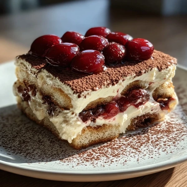 - Dust the top with cocoa powder just before serving. This adds a touch of bitterness that contrasts beautifully with the sweet cherries and creamy layers.